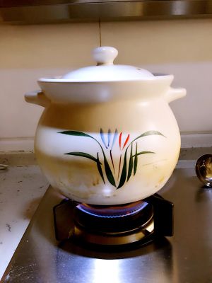 电炖锅炖25分钟就行了,这时墨鱼骨已经脱骨了 可以捡出来。