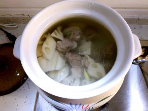 排骨、藕、生姜,一次性加够水,大火烧开后转小火2小时。
