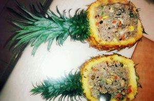 再把饭倒入事先准备好的菠萝皮中,就大功告成了。(。・ω・。)ノ♡假的真的,做出来居然超好吃。