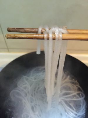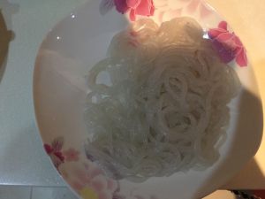 如果想吃粉条就提前把粉条泡在热水里泡上1小时以上,泡半天也没关系,这样做的时候就缩短时间,这张图片是已经泡好的粉条,已经再煮了
