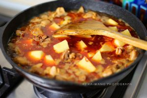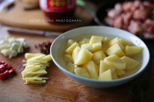 最后放入土豆,注入清水没过鸡块和土豆,大火烧开;