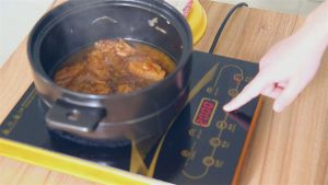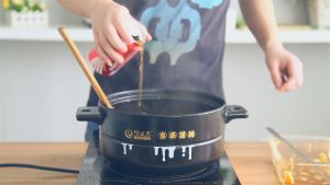 然后把可乐跟酱油倒进去。焖半个小时左右。
