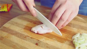 把鸡翅用冷水浸泡一会去掉血水,再用厨房纸把水吸干,然后把鸡翅正反两面都用刀划三刀,这样更好入味,姜末、盐、料酒、生抽、生粉适量抓匀鸡翅腌制半小时。