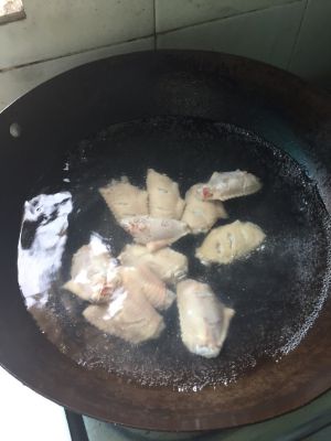 然后放到锅中小火煎 锅中只需淋一层油 防止沾锅 然后慢慢煎 把鸡翅本身的油煎出来 这样出来的鸡翅不油腻
