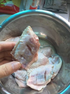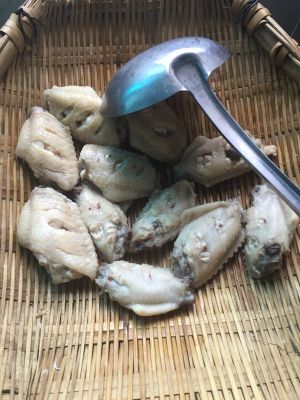 十五分钟后 取出腌制成功的鸡翅 注意不要留蒜头 姜在上面