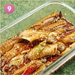 鸡翅取出,码放在黄瓜条上,把拌匀的调味汁浇在上面,可放入冰箱冷藏后再食用。
