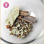 把干料准备好,其中有:大料,桂皮,麻椒,花椒,茴香,丁香,香叶。
