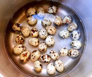 再焖制鸡腿时可以节省时间,锅中加入适量清水开始大火煮鹌鹑蛋10分钟即可