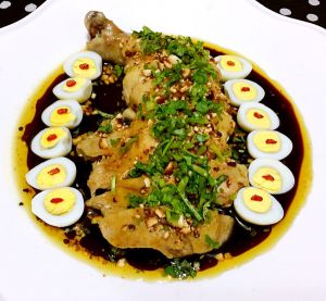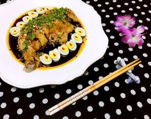 做法4:口水鸡腿拼金蛋