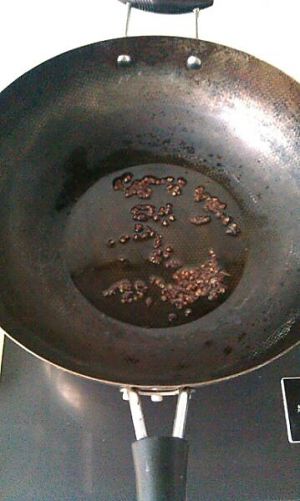 锅中倒入适量的油,小火下入干料,慢慢煎出香味。