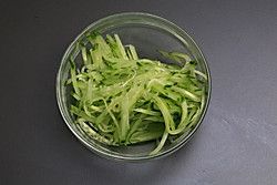 黄瓜洗净切片码放在盘中备用。