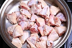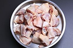 将鸡腿剁成需要的条状摆入盘中