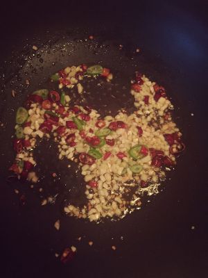 准备好蒜末,干辣椒段,花生碎