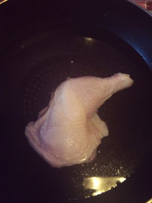 把整只鸡腿放在锅里煮熟,然后放在冷水中备用。