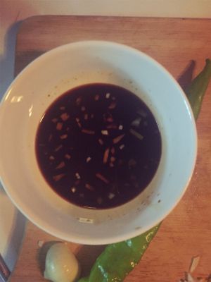 香醋,酱油,蒜末,白糖适量混合备用!