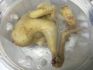 鸡用清水泡2小时 中间换水。这样可以去掉腥味。