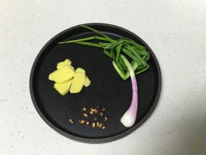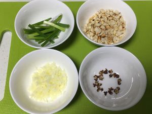 切葱段、蒜末,准备好花椒,花生放凉后去皮,切碎备用