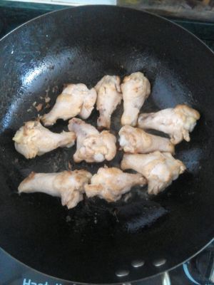 腌制好的鸡翅上锅煎一下(这一步可以不要直接跳一下步,一是个人喜好,我喜欢先煎一下) ps:这几张图片都是晚上做的时候拍的,所以拍的不清楚,不好,多担待哈