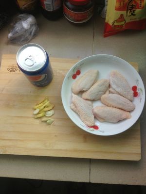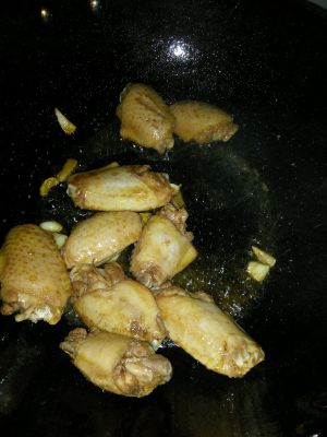 热锅放油,油熟后将腌制的鸡翅放进锅里炸,鸡翅炸为金黄色后加入可乐煮