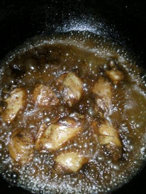 把配好的汤汁和鸡翅一起放锅里,中火就行,反正面都沾上色,几分钟就行