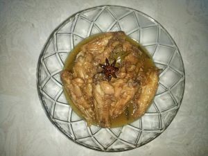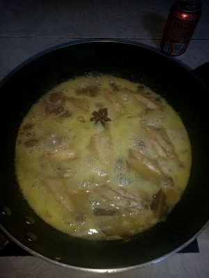 倒入可乐盖过鸡翅稍微多一点点就行,再放入一颗八角一起煮到收汁