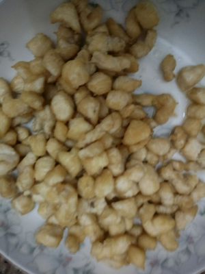 鸡肉炸干至焦黄捞出