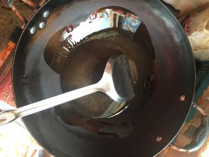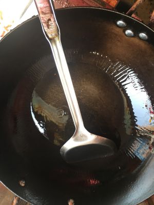 另起油锅,倒平时炒菜量的油,烧热(油变清澈,油面没有小泡)