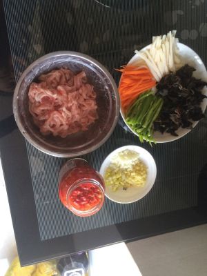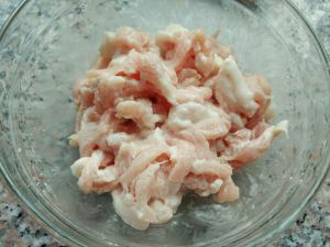 里脊肉切丝,加一汤匙淀粉,少半勺盐进行腌制