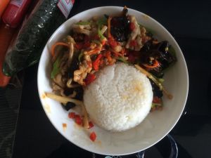 调汁:两勺糖、两勺老干妈辣油椒、两勺醋、两勺生抽。