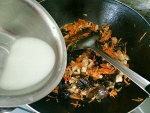 倒入煸炒好的菜丝