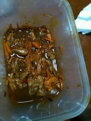 加入调好的调料,(盐,生抽,山西陈醋,糖等拌好)把肉丝加进来翻炒,即可出锅。