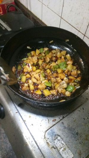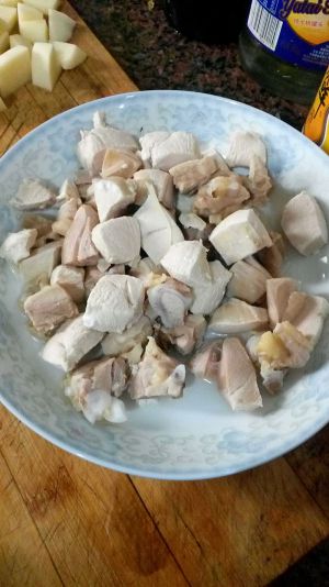 期间要翻炒下,不要让鸡烧糊,等水烧干