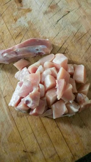 把公鸡砍成小块,用姜片料酒把血腥味去一下