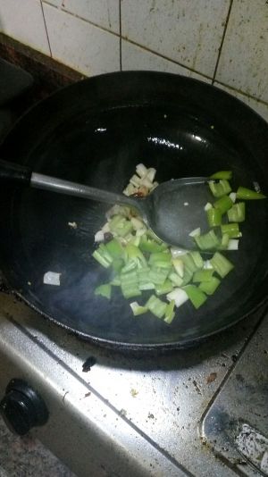 放入葱姜蒜块 辣椒翻炒 至出辣味