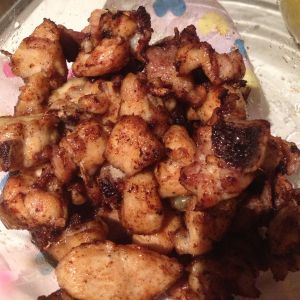 芝麻炒香,辣椒花椒的色泽也正好,此时的鸡肉已经煸炒得外焦内酥,滋味十足。在没吃之前细细端详,火辣辣的一大盘,真有那么些狂野的味道。