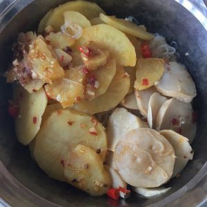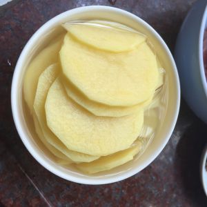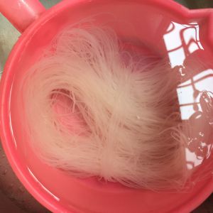 先煮粉丝 粉丝不用煮太久的 捞起来放碗里 然后再放杏鲍菇跟土豆
