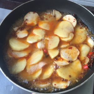 杏鲍菇可以先捞起来 把土豆煮到软了(因为我喜欢吃口感粉粉的土豆)然后就放入肉片 这里忘了拍照了