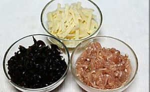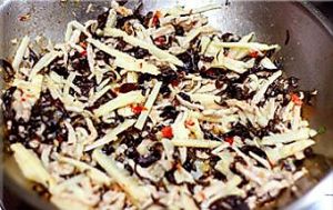 锅中水烧开,将木耳丝煮熟捞起沥干待用