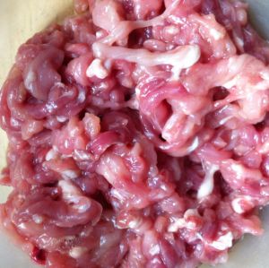 瘦肉丝用鸡蛋清、料酒,少许生抽、砂糖腌制一会