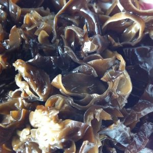 再放茭白和四李豆 ,黑木耳炒几下 ,放盐炒匀加上水少量 ,上盖煮熟 。
