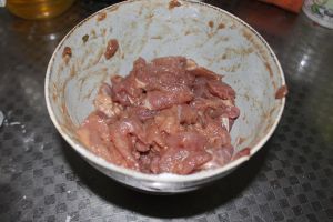 先将肉切片,不要切的太薄也不要切的太厚。否则会影响口感。