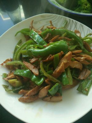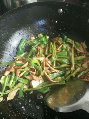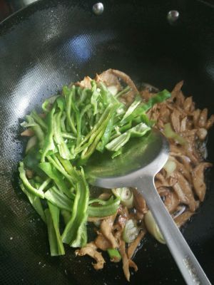 放入尖椒块,炒至断生。出锅。郫县豆瓣酱非常咸,可根据郫县豆瓣酱的量控制咸度,如果不吃太辣的,可以少放豆瓣酱加点盐。