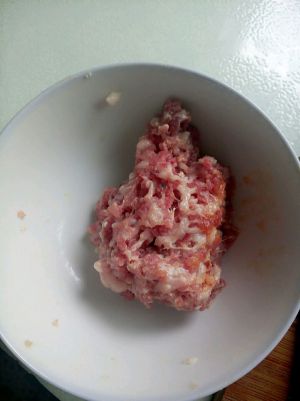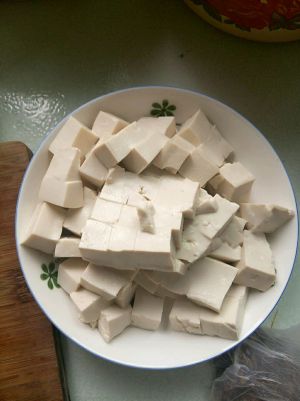 豆腐切成1厘米的方块,肉剁成末,加料酒、生抽、玉米油拌匀。