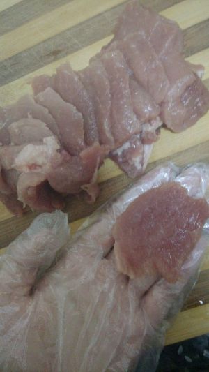 瘦肉切片,加盐,生抽,鸡精,鸡蛋清(1),淀粉若,腌制备用