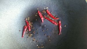 花椒辗麼成粉(黑色颗粒要成粉),干辣椒切成丝