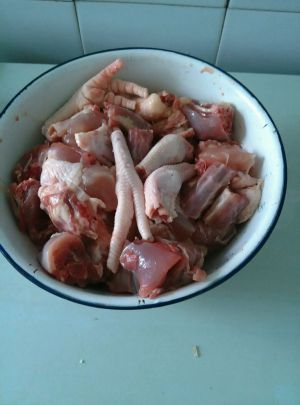 鸡洗干净后砍成小块,放料酒、盐、腌制备用。