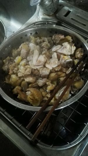 少许竹叶。炖的时候放一些。留清香。 备材料的时候先把鸡剁碎,过下水,捞出。