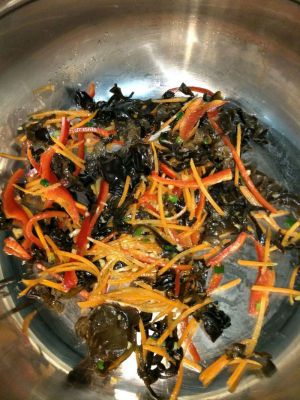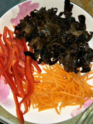 红辣椒,黑木耳,胡萝卜,切丝备用