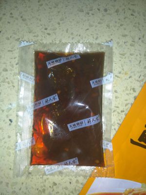 调料包倒入之后,翻炒均匀后,加入刚才调好的水淀粉,翻炒至收汁后,即可出锅