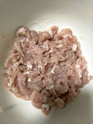 首先准备好需要的材料,肉丝放少许料酒和淀粉盐一下